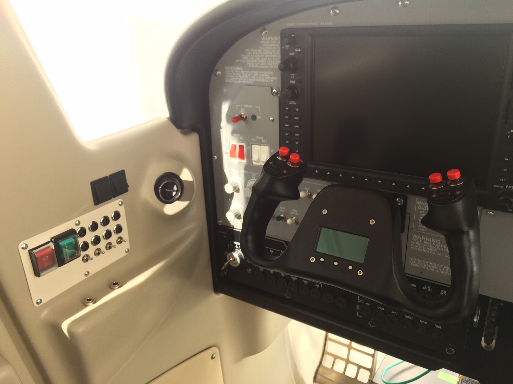 Adaptations available for Cirrus (sidestick), Diamond (entre stick), Standard Yoke, Control Loading Controls, Helicopters (Cyclic & Collective)